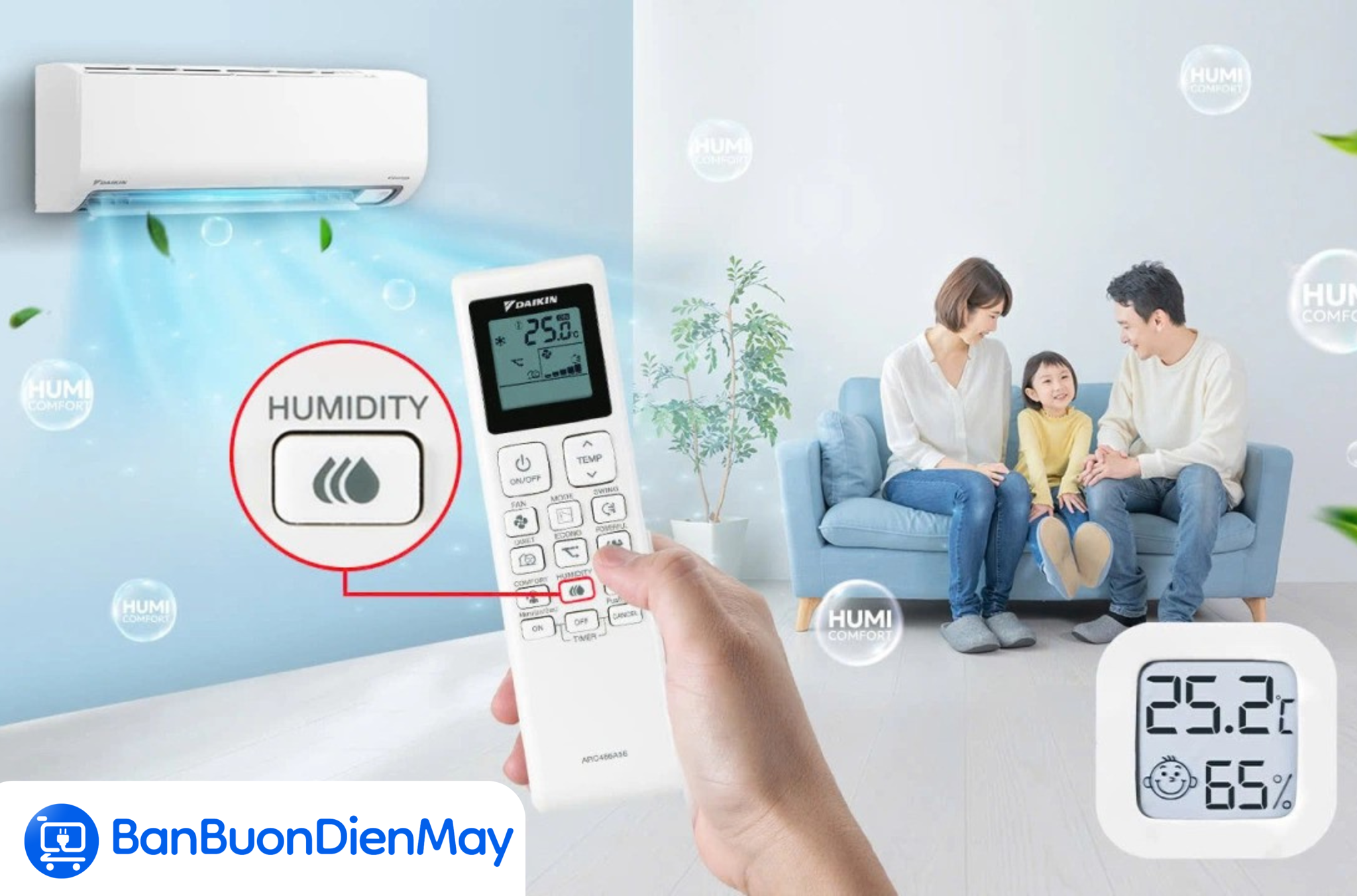 Công nghệ Humi Comfort giúp duy trì độ ẩm ở mức mục tiêu 65%, giảm tình trạng khô da, khô mũi và các bệnh hô hấp. Tính năng này đặc biệt hữu ích khi dùng điều hòa trong thời gian dài hoặc trong phòng có trẻ nhỏ, người già.