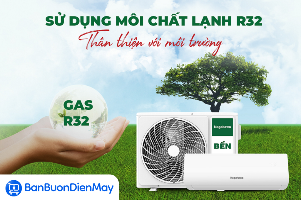 Nagakawa NS-C09R2B52 sử dụng môi chất lạnh R32 - loại gas tiên tiến nhất hiện nay. So với gas R410A hay R22 cũ, R32 cho khả năng làm lạnh nhanh hơn, tiết kiệm điện hơn và đặc biệt không gây suy giảm tầng ozone, đảm bảo an toàn cho sức khỏe và thân thiện với môi trường.