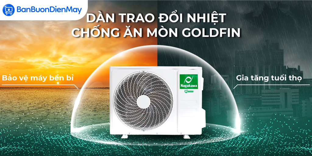 Cả dàn nóng và dàn lạnh đều được phủ lớp chống ăn mòn GoldFin, hạn chế bám bẩn và chống lại các tác nhân gây hại từ môi trường như không khí ẩm, hơi muối biển. Điều này không chỉ giúp máy vận hành bền bỉ hơn mà còn kéo dài tuổi thọ, giảm chi phí bảo dưỡng.