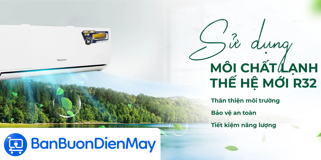 Nagakawa lựa chọn môi chất lạnh thế hệ mới R32 – loại gas được đánh giá an toàn và thân thiện với môi trường hơn so với R22 và R410A. Gas R32 giúp tăng hiệu quả trao đổi nhiệt, làm lạnh sâu hơn và giảm thiểu tác động đến tầng ozone. Đây cũng là xu hướng chung của các dòng điều hòa hiện đại.