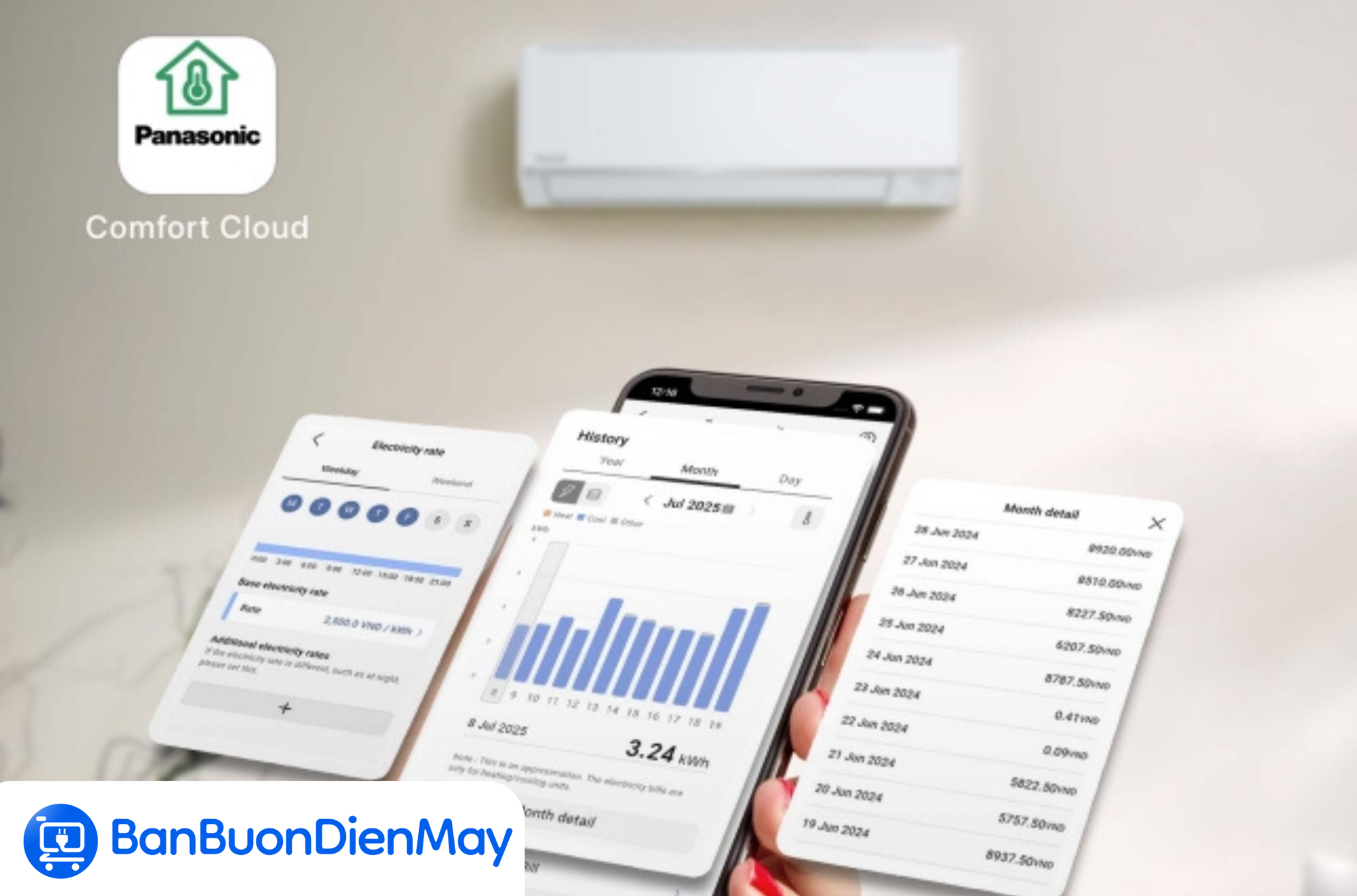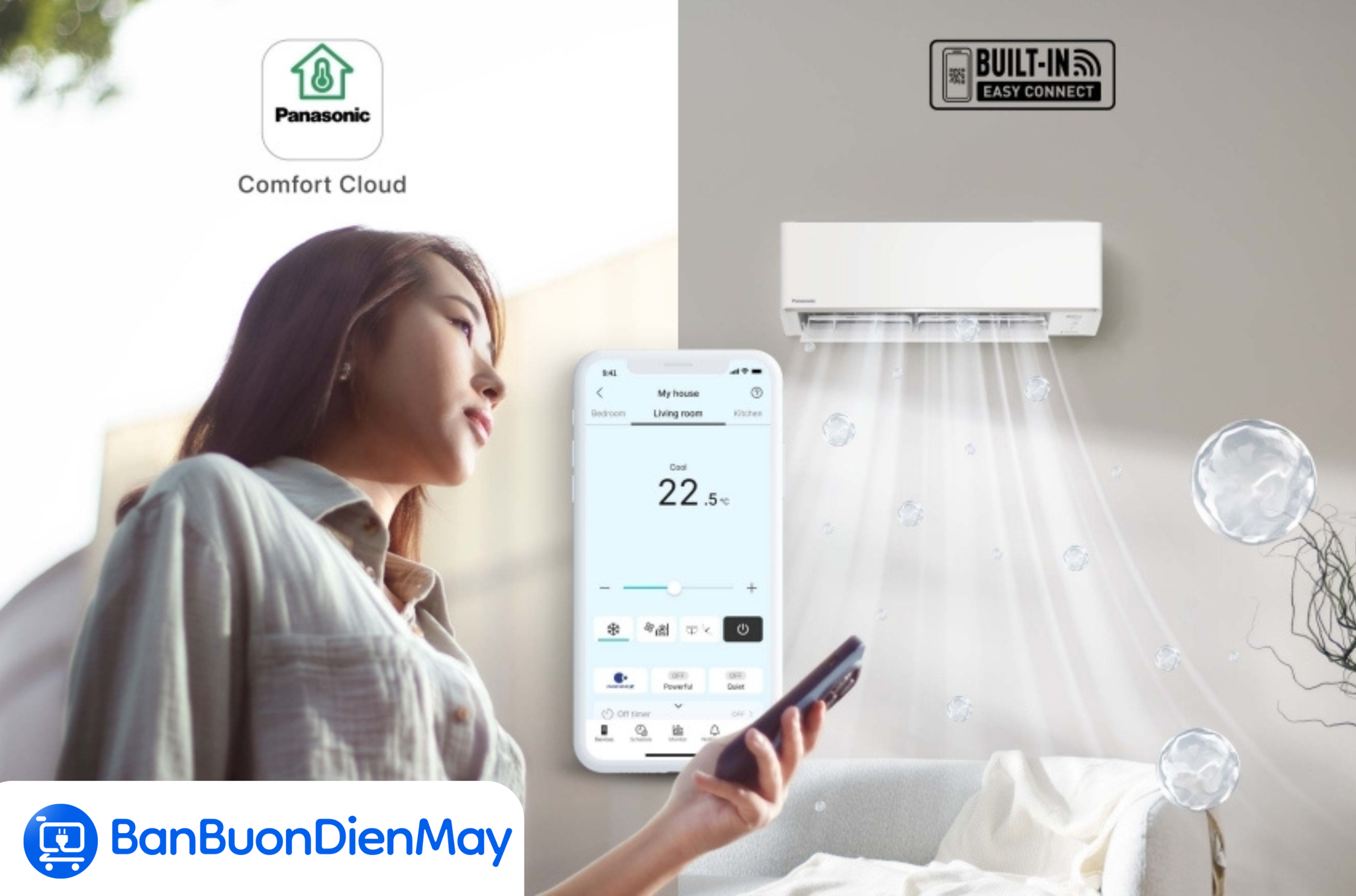 Không chỉ dừng lại ở đó, mẫu điều hòa này còn hỗ trợ điều khiển thông minh thông qua ứng dụng Panasonic Comfort Cloud trên smartphone hoặc máy tính bảng. Ứng dụng cho phép bạn kết nối và quản lý nhiều thiết bị ở các phòng khác nhau, dễ dàng theo dõi và điều chỉnh từ xa, mang đến trải nghiệm sử dụng linh hoạt, hiện đại và tối ưu theo nhu cầu cá nhân.