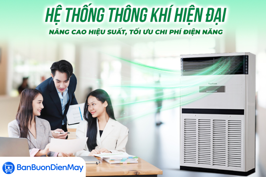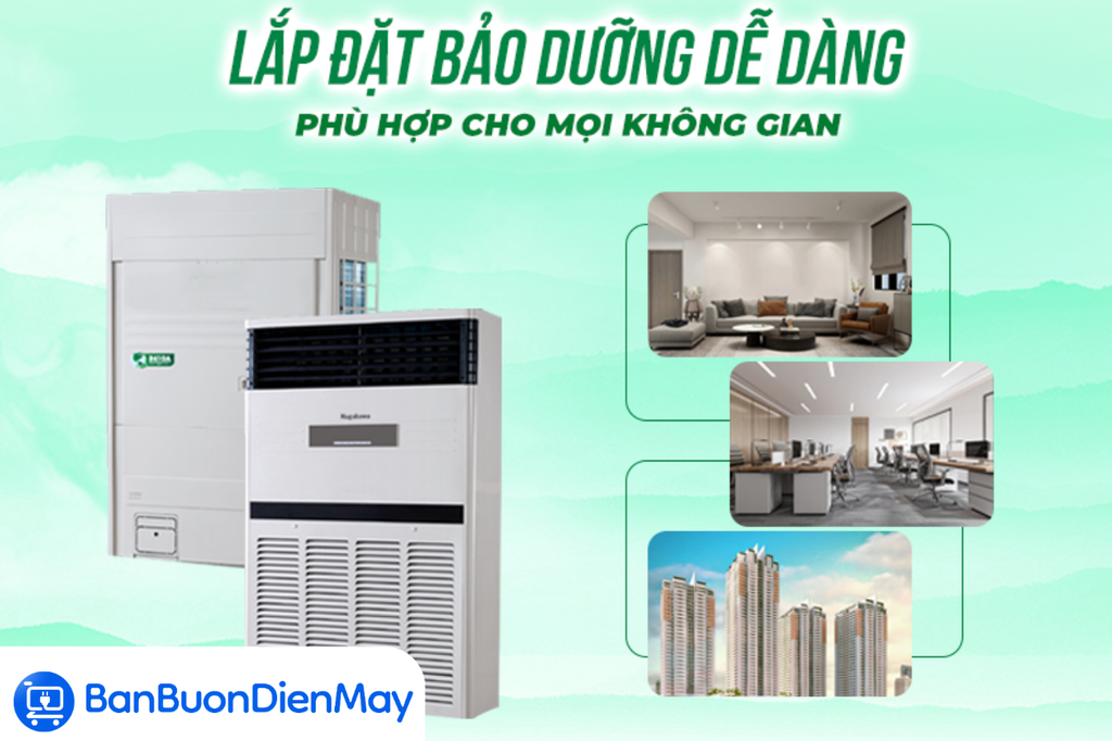 Với công suất mạnh mẽ lên đến 100.000BTU, model này lý tưởng cho các không gian lớn như nhà xưởng, hội trường, sảnh khách sạn, nhà hàng hay showroom. Dù diện tích rộng đến 160m², máy vẫn làm mát nhanh và đồng đều, giúp tiết kiệm thời gian chờ đợi và nâng cao hiệu quả làm việc.